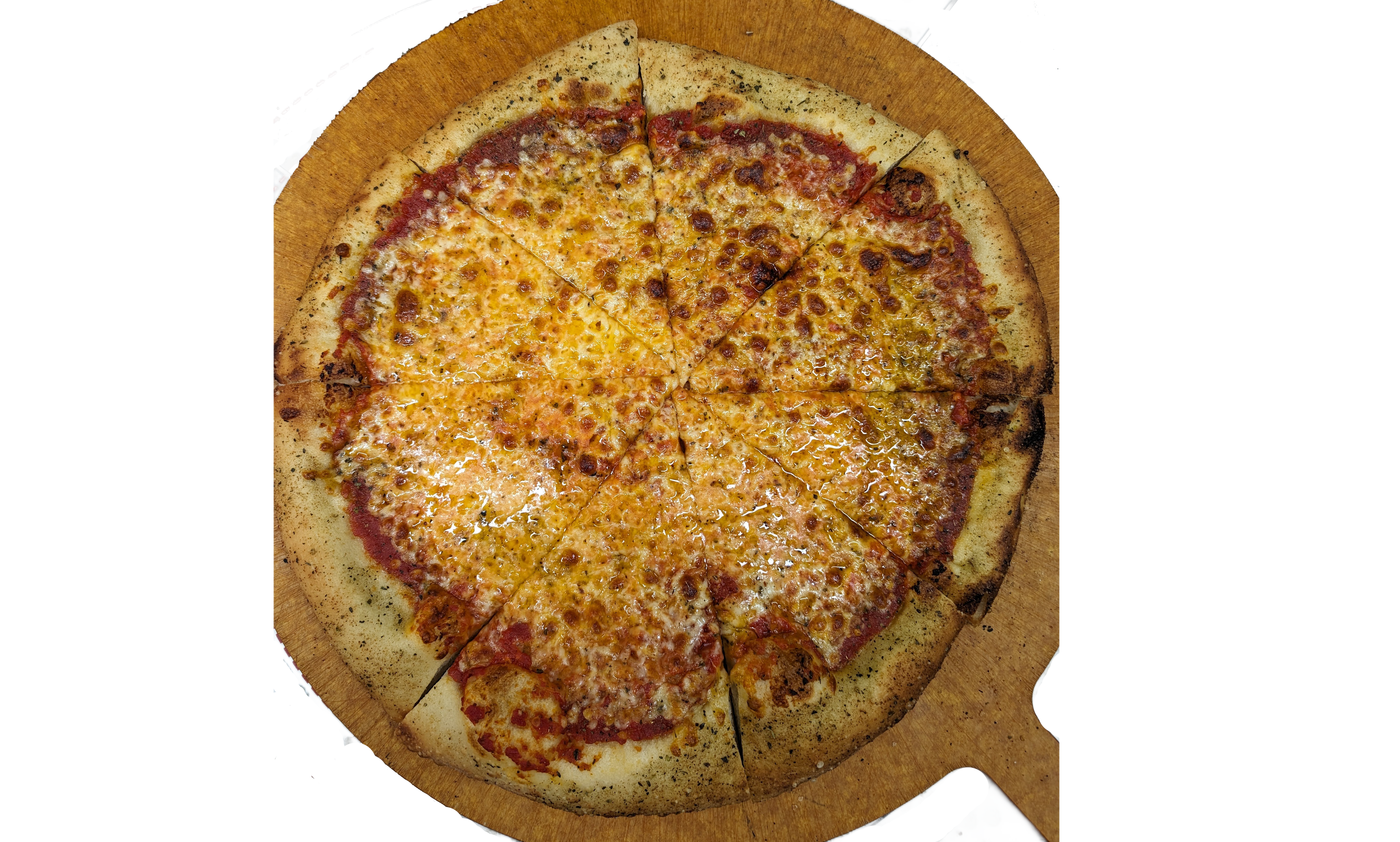 New York style hand-tossed pizza with cheese, pizza sauce, and amazing herbs.
